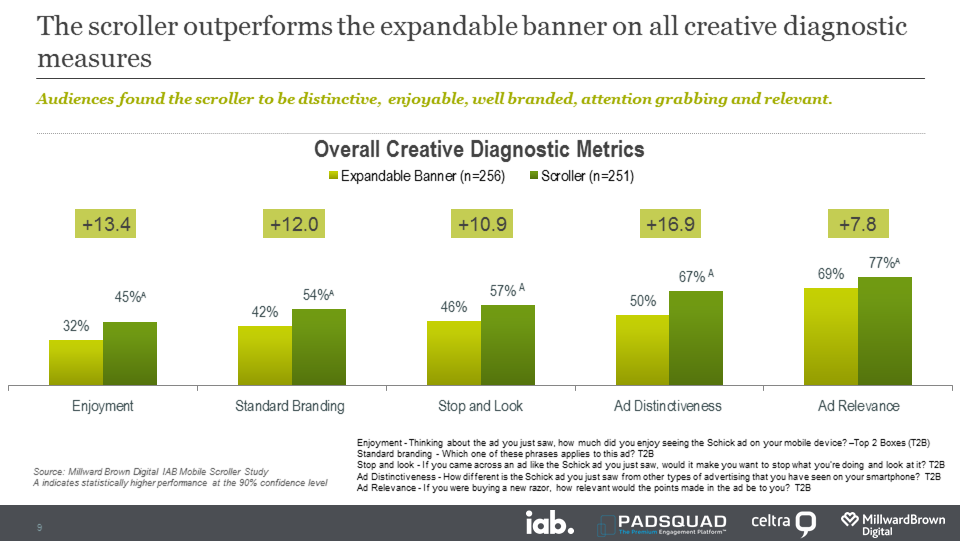 “The ad worked well for all ages, but Millennials showed a particularly strong response to the way the scroller revealed itself, with 44% expressing positive feelings about it (as compared to 31% of those over 35 years old).”