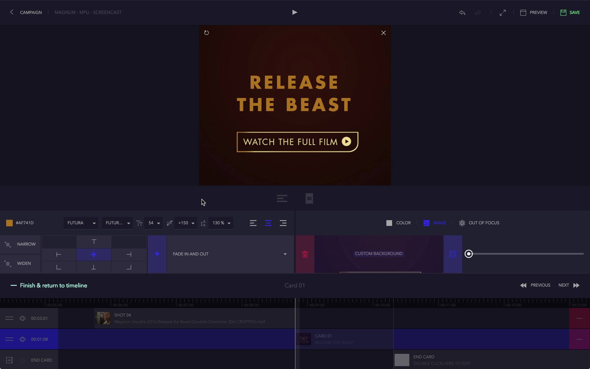 The second miracle was developing a full-fledged video editor application running in the browser for an integrated production of such ads. It had to be simple enough for amateurs to be proficient with it yet powerful enough to cover as many adaptation use-cases as possible.
