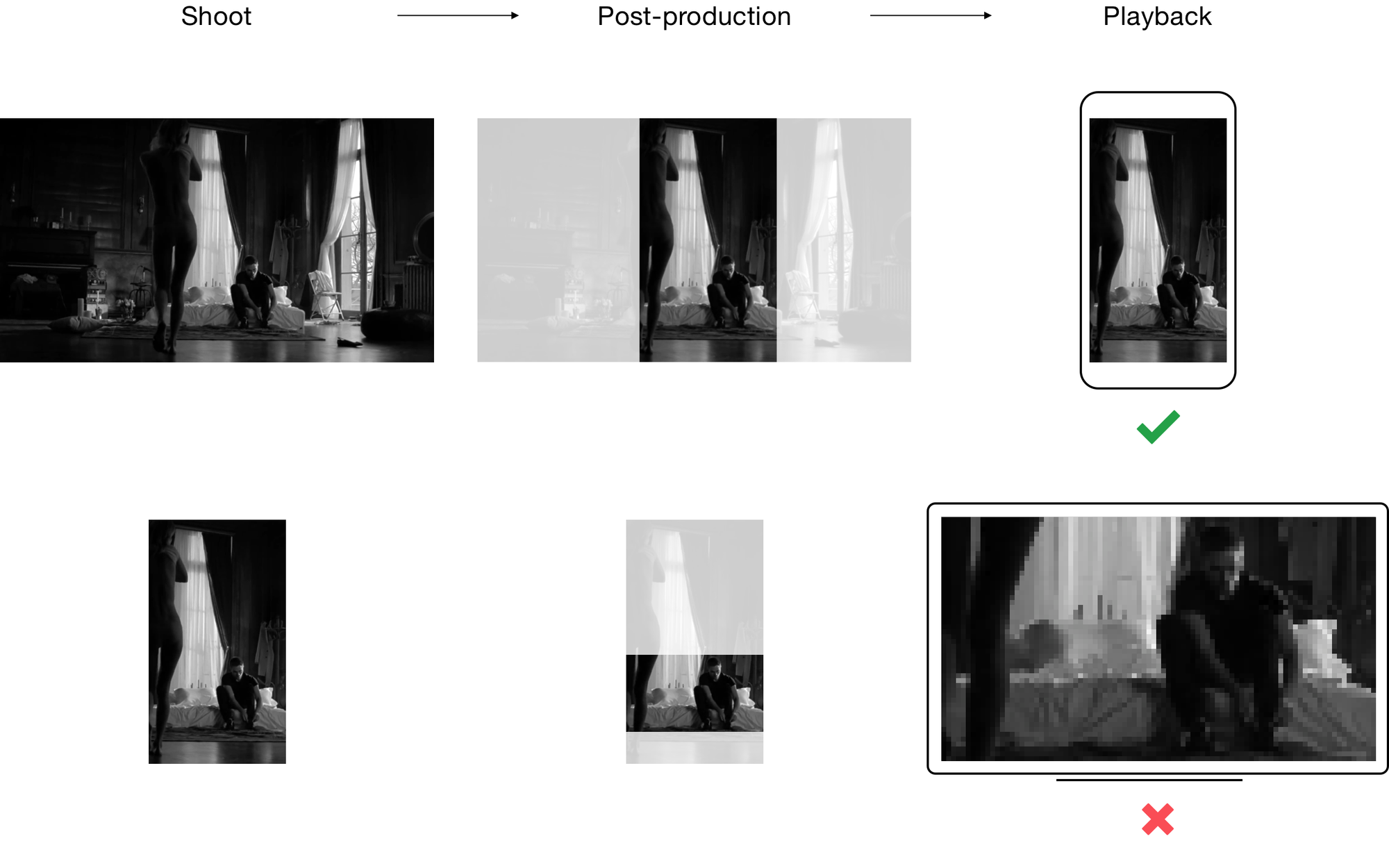 - Video needs to be shot in landscape but directed so that the subject can always be framed within a 9:16 vertical format.