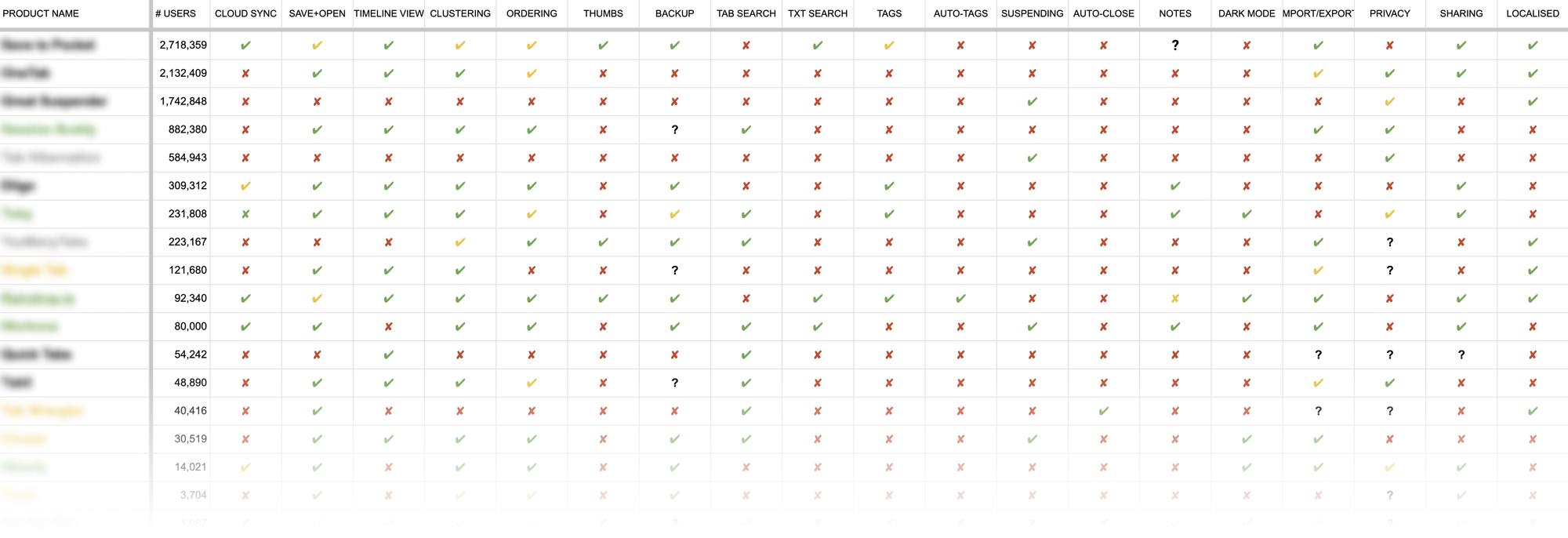 Competitor-, SWOT- and MoSCoW- analyses helped us evaluate and prioritize features. We never developed a browser extension before, and there’s very little literature available on the subject, so we knew we had to test all our assumptions.