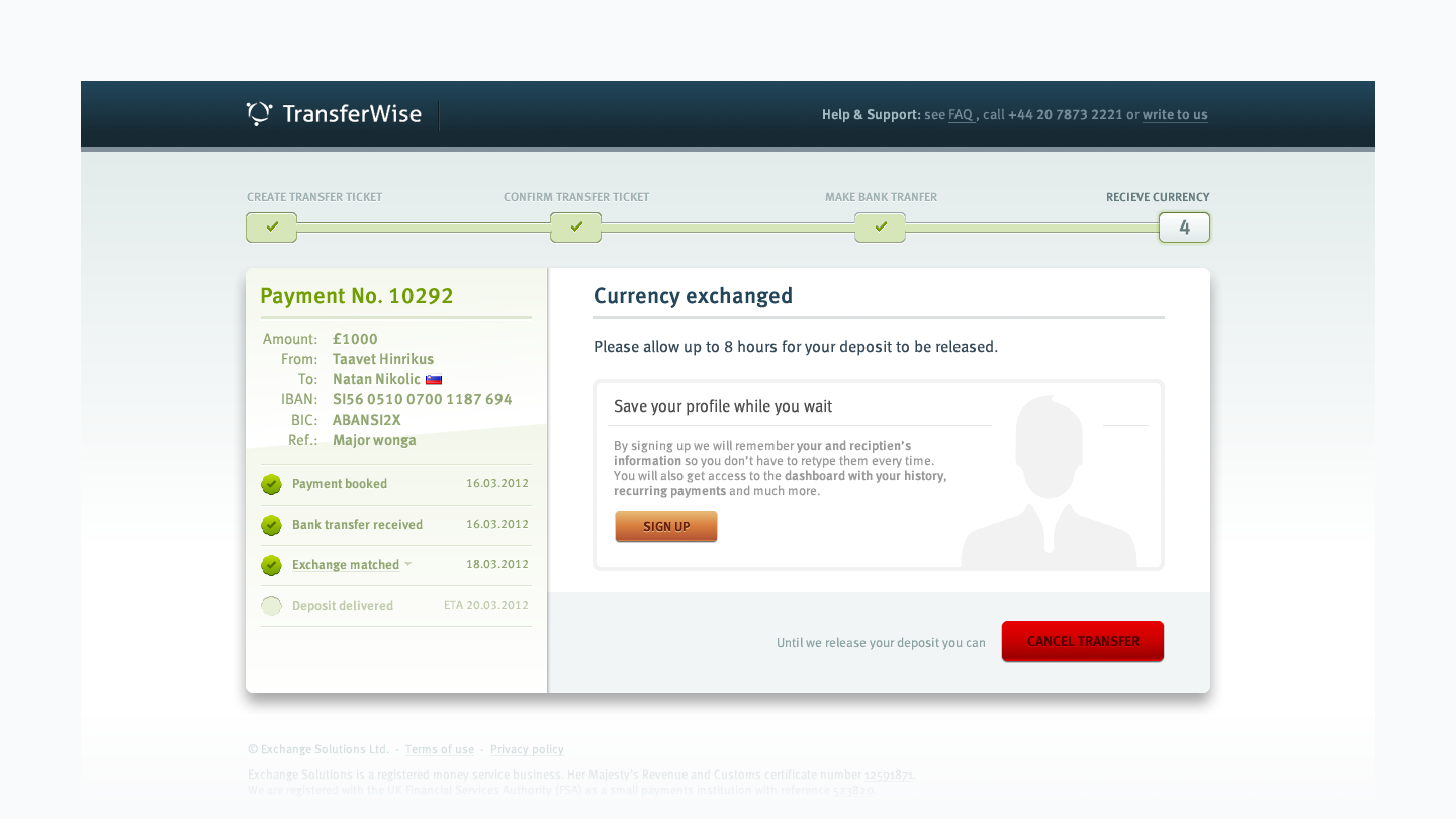 - Improved conversion rate by optimizing transfer flow steps, required fields, and applying other best practices